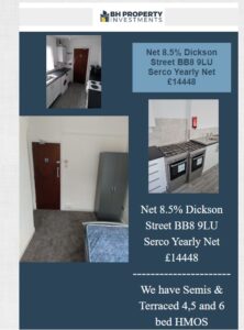 Net 8.5% Dickson Street BB8 9LU Social HMOs Yearly Net £14448